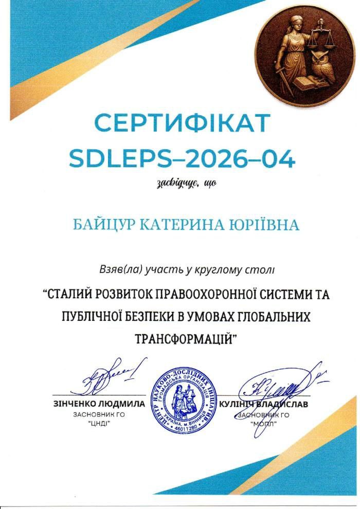 Громадська організація “ЦНДІ” 19.01.2025 року . Провела круглий стіл, захід було організовано Громадськими організаціями «Центр науково-дослідних ініціатив» та «Молодіжна організація починаючих лідерів» у співпраці з відділом аспірантури (ад’юнктури) і докторантури Харківського національного університету внутрішніх справ.